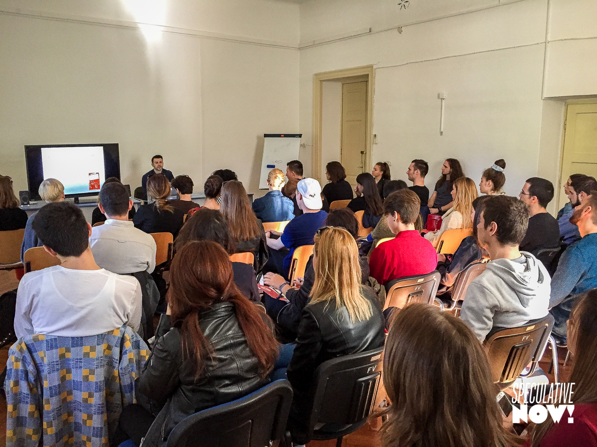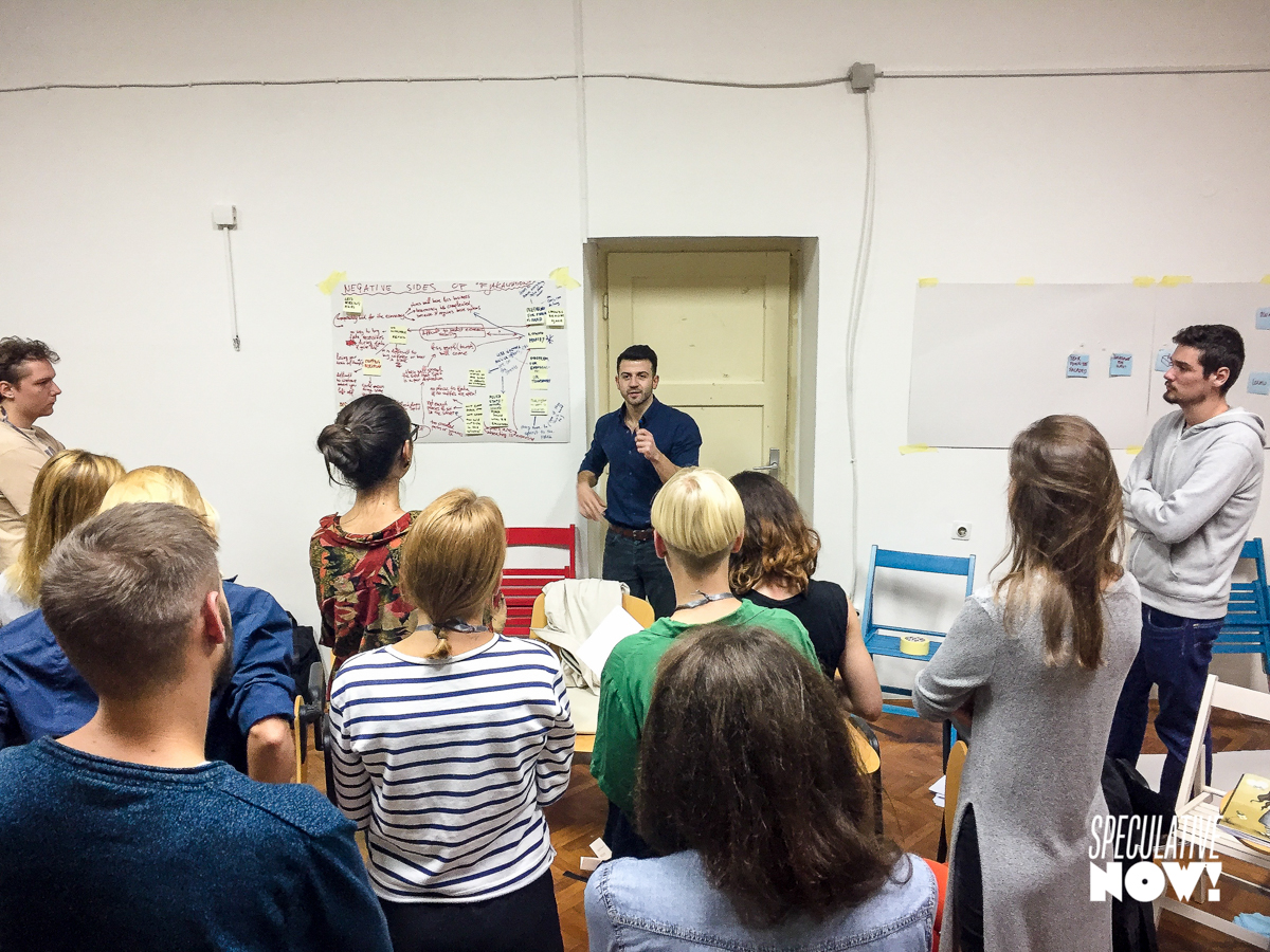 In the context of the workshop, in order to discuss, critically reflect and re-think today speculative design practice, public discussion took place on Wednesday 19th of October. Invited guests discussed the role of the speculative design in the real world. James Auger (former member of the legendary Designing Interactions department at RCA, now at the Madeira Interactive Technologies Institute, co-founder of the Crap Futures blog), one of the pionners of this design practice will give short introductory talk.