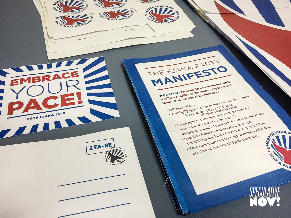 Speculative design workshop took place at the Arts Academy in Split, Croatia, from 17th till 22th October 2016. Workshop was led by trans-disciplinary designers Demitrios Kargotis (from the DashnDem design practice, London and Goldsmiths, University of London and Birmingham City University) and Pedro Oliveira & Luiza Prado (from A Parede research platform, based around PhD study at Universität der Künste Berlin) with assistance by Oleg Šuran (Department of Visual Communication Design, Arts Academy, Split).