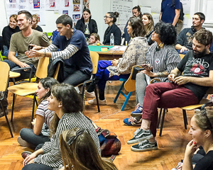 Together with the workshop leaders (Demitrios Kargotis, Pedro Oliveira and Luiza Prado) discussion also hosted Regine Debatty (founder of the cult blog we-make-money-not-art), Matt Ward (Head of the Design Department at Goldsmiths, University of London) and Mirko Balducci (co-founder of the italian multidisciplinary lab / network Nefula). Discussion was moderated by the workshop coordinator assistant professor Ivica Mitrovic (Department of Visual Communications Design, Interakcije).