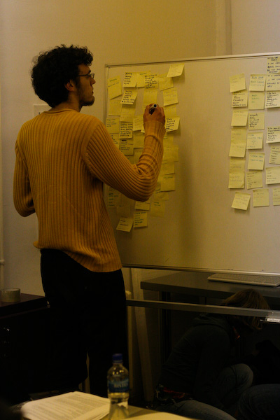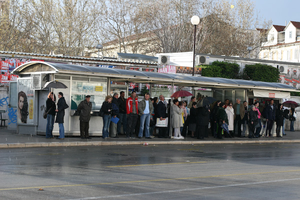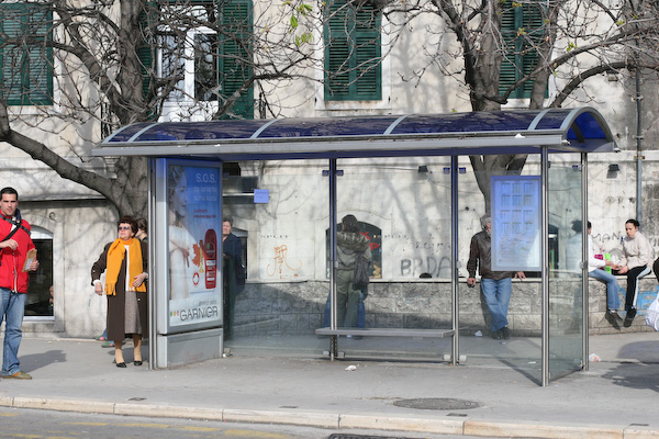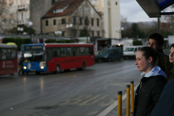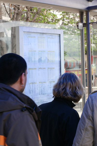 Chatting is term used and popularized in virtual world, but we decided to combine it with reality. Instead of dull commercials on bus stations, we put a display on bus station. This display functions like a window where your messages can be shown if you have Bluetooth option on your mobile phone. This system can be activated only if you enter bus station with a proper bus ticket. If you are bored, why not communicate with other people that are also waiting for a bus, but on different stations? Our mission was accomplished. We connected people without disturbing their privacy in a very amusing way.