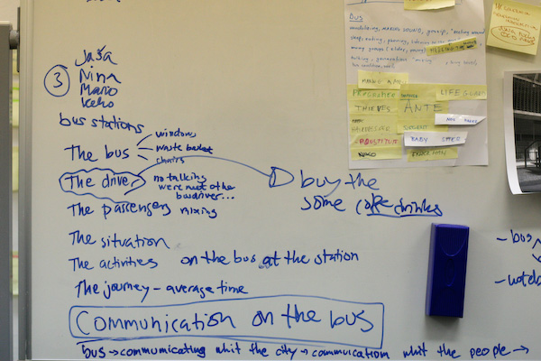 Nowadays techonology is in every single part of our lives. Virtual world gives us opportunity to communicate in completely anonymous way. In everyday commuting communication is being ignored, everyone is busy and occupied with their problems. We decided to intervene in a small, regular bus station. It is a place where people are often very bored while waiting on a bus. In our survey, we realized that most of them were nervous, annoyed and completely unaware of other people.