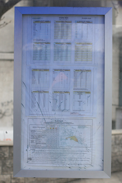 Arrival indicator is actually a rectangular Plexiglas surface where all the bus lines are shown like numbers. These numbers are carved into surface and they glow in different colors. The color of the number changes depending on the location of the bus. Color is intensive if the bus is closer, and fades if the bus is far away.