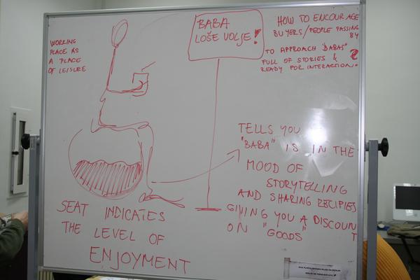 Messages written on the board would be placed on the stalls with the intention to provoke people to stop, speak and buy.