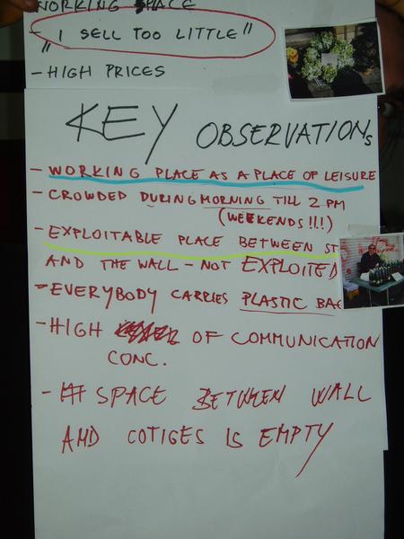 The group dealing with social aspects collected data reflecting on different interactions between sellers and buyers with, a focus on sellers. Facts were gathered while observing social movement of people, shadowing, interviewing and storytelling.