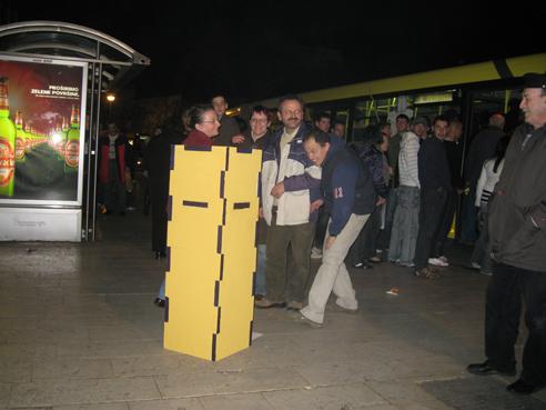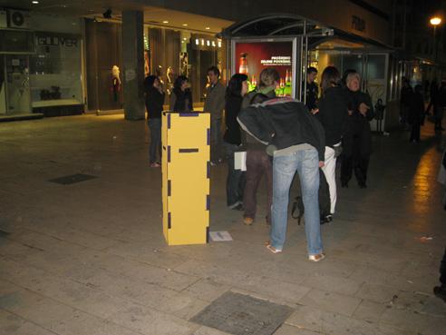 - boxes attracted many people - groups around boxes