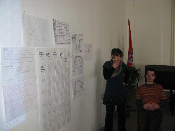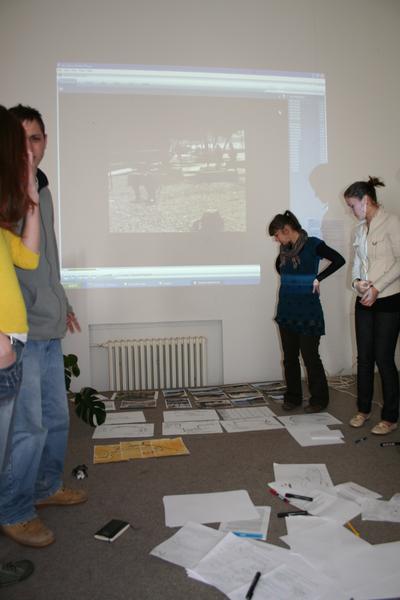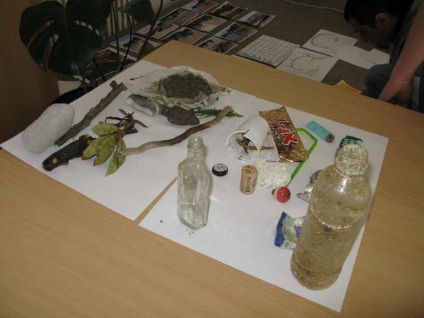 We start to gather information. We interviewed lots of people, and we found out lots of interesting and useful information's. We also collected all kinds of objects from the beach, so that we can use them later as a reminder of the place. Then we had a relaxed coffee in a bar overlooking the place and we started a very loud discussion...