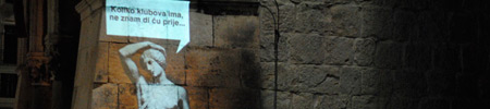 This installation sought to connect the past and present for the citizens of Split and to offer an opportunity for expression concerning the local issues of today. The work was situated in the conceptual space where digital projections meet analog space.