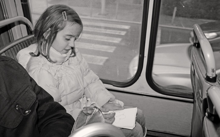 We usually help and inspire our citizens to provoke their creativity... Everybody who comes in the bus and who has a ticket can be a part of our city. We aim to build a city made by other people drawings. There is no age limits, good or bad drawings. The only problem is called "kontrola" (controller). We can't fight against him, we can only buy a ticket.