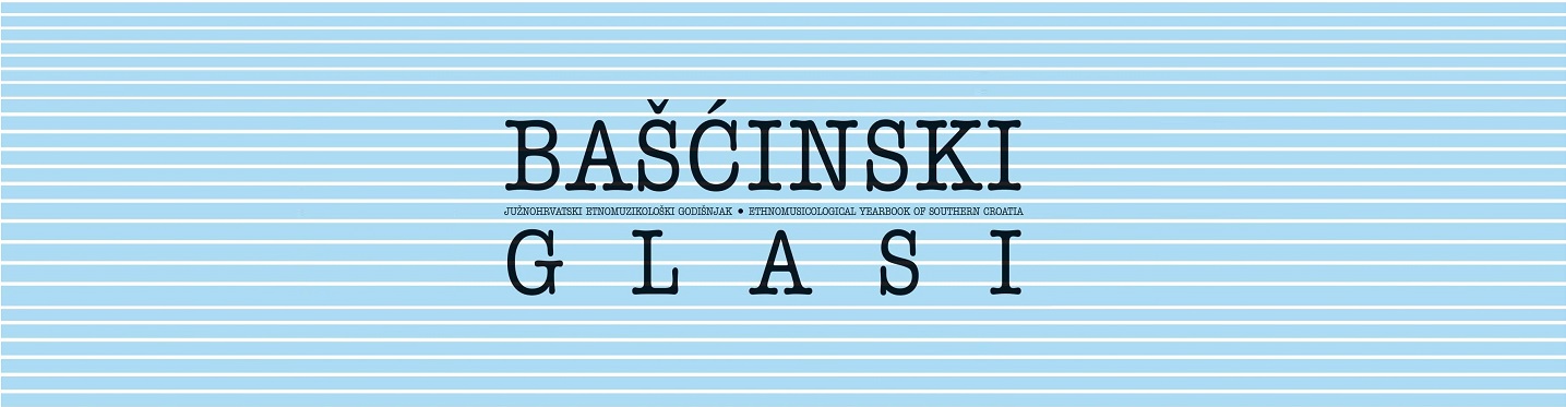 The journal Bašćinski glasi is the only ethnomusicological journal in the Republic of Croatia. It is published by the Academy of Arts of the University of Split, and was founded in 1991 by Nikola Buble, an ethnomusicologist and long-time professor at the Academy of Arts. It has since been published continuously, for some time as a double issue; to date, more than 200 contributions have been published.
