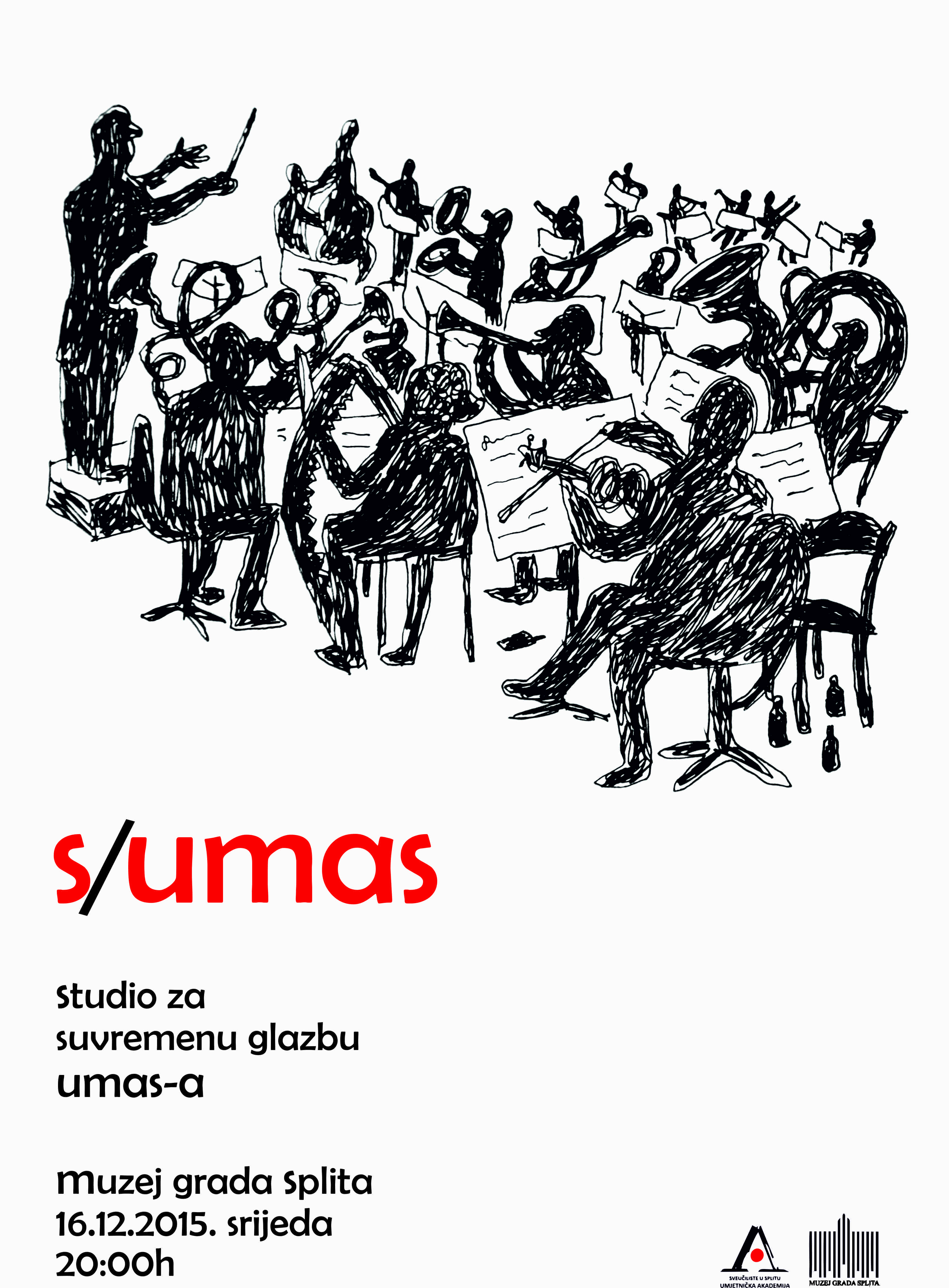 U srijedu, 16. prosinca sa početkom u 20h održati će se premijerni koncert S/UMAS (Ansambla za Suvremenu Glazbu pri Umjetničkoj Akademiji u Splitu). Koncert će se održati u Gotičkoj dvorani Muzeja Grada Splita.