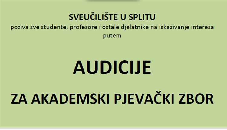 Sveučilište u Splitu u okviru svoje Strategije, točnije 4. strateškog cilja kroz koji potiče umjetničko stvaralaštvo s naglaskom na interdisciplinarne interakcije kulturne baštine i suvremenih kreativnih industrija, a u suradnji sa Studentskim zborom, pokreće inicijativu za iskazivanjem interesa s krajnjim ciljem osnivanja AKADEMSKOG PJEVAČKOG ZBORA.