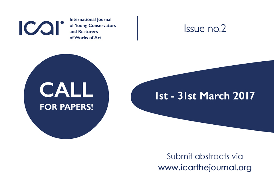 Znanstveni časopis ICAR – International Journal of Young Conservators and Restorers of Works of Art poziva autore – studente konzervacije-restauracije i one koji su nedavno diplomirali – da svojim prilozima sudjeluju u oblikovanju drugog broja časopisa. Rok za prijavu sažetaka je 31. ožujka 2017. Detaljne upute dostupne su na web-stranici časopisa.