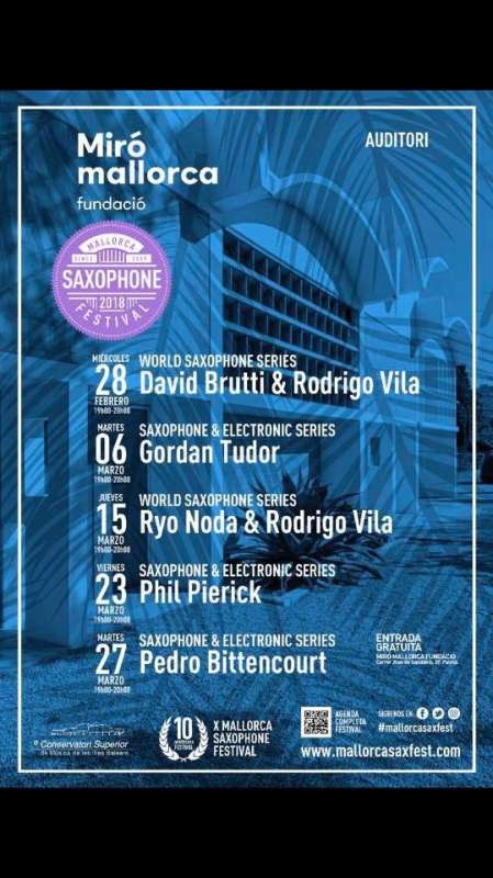 Nakon dva solistička recitala te majstorskog seminara (posredstvom Eramsus+ Programa) održanog u veljači u sklopu Sax Only festivala u Antwerpenu, docent saksofona na UMAS-u Gordan Tudor, održat će 6. ožujka 2018. solistički recital u Muzeju Joan Miró na Palma de Mallorci u sklopu 10. Mallorca Saxophone Festivala.