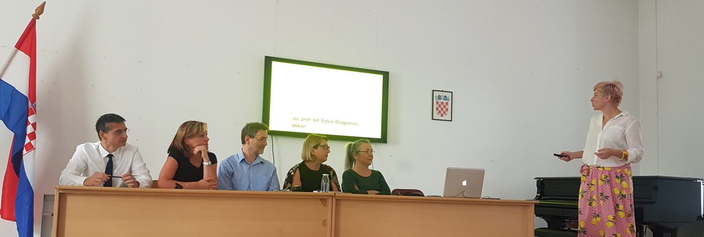 Studentima se obratio dekan Akademije, izv.prof.art. Edvin Dragičević, prodekan za nastavu Odjela za likovnu umjetnost doc.art. Slobodan Tomić, prodekanica Odjela za glazbenu umjetnost doc.art. Vesna Podrug Kossjanenko, prodekanica za izgradnju i razvoj izv. prof. art. Lara Aranza te prodekanica za umjetnost, znanost, međunarodnu suradnju i ECTS dr. sc. doc. art. Sagita Mirjam Sunara.