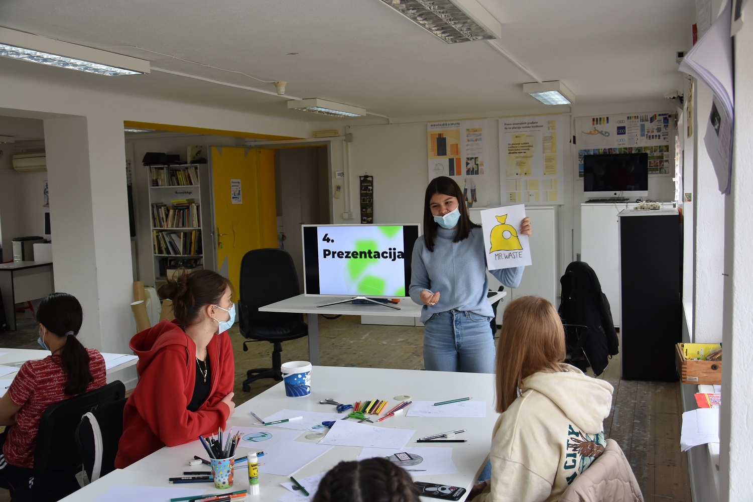 Na dizajnerskoj početnici u subotu, 13. studenog, učenici Opće gimnazije Vladimir Nazor iz Splita izradili su svoje prijedloge za logo projekta ”Mr. Waste”.