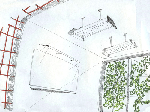 Zaobljen krov zgrade nove akademije, velika ljuska ili oklop, izložen je čitavom svojom površinom Sunčevim zrakama na kojem se nalaze fotonaponski moduli. Južni dio krova spušta se do poda tako da je moguće popeti se na krov na kojem je između modula smještena šetnica. Ispod nastrežnice s južne strane zgrade mogu se ugraditi okomiti savonius vjetro geneartori.