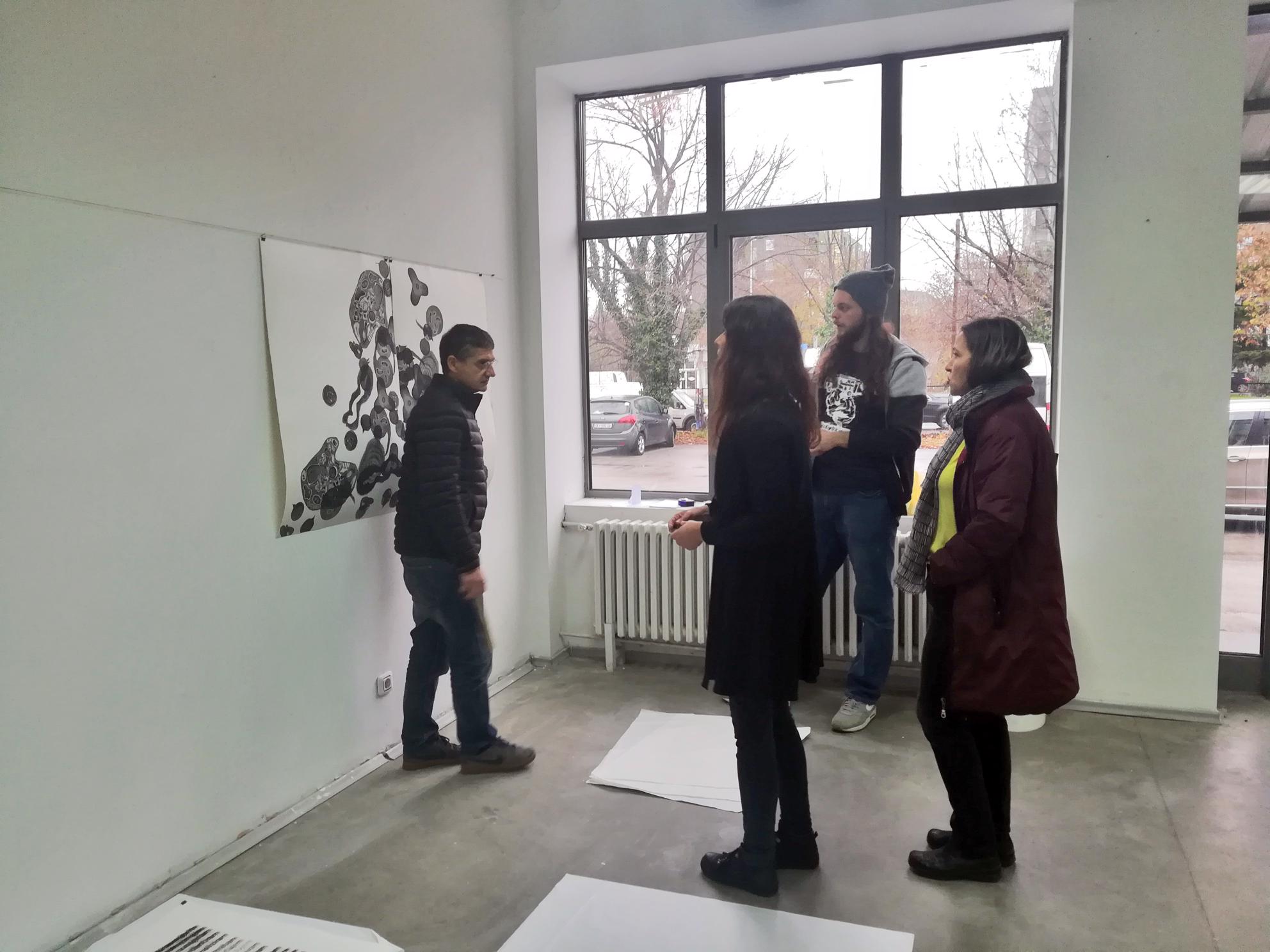 Otvorenju izložbe nazočili su dekan Umjetničke akadmije u Splitu prof. Edvin Dragičević, prof. Maja Zemunik te studentice Ana Delale i Andrea Šariḱ.
