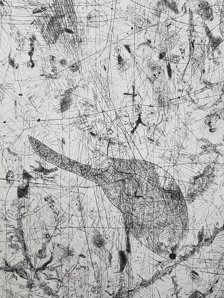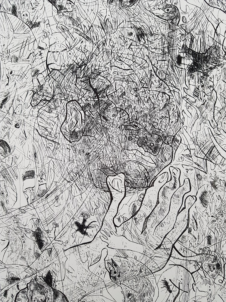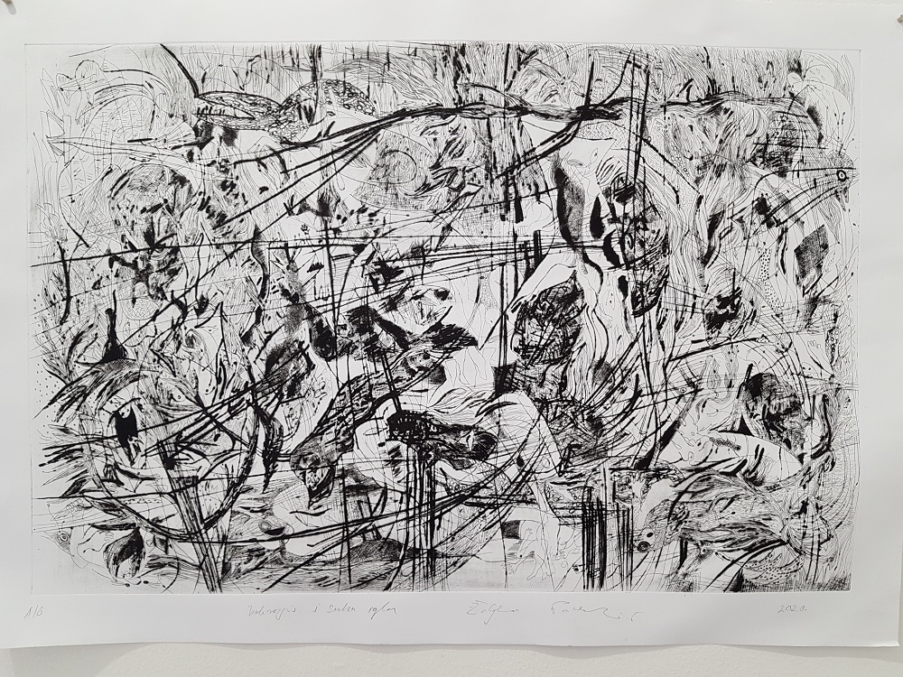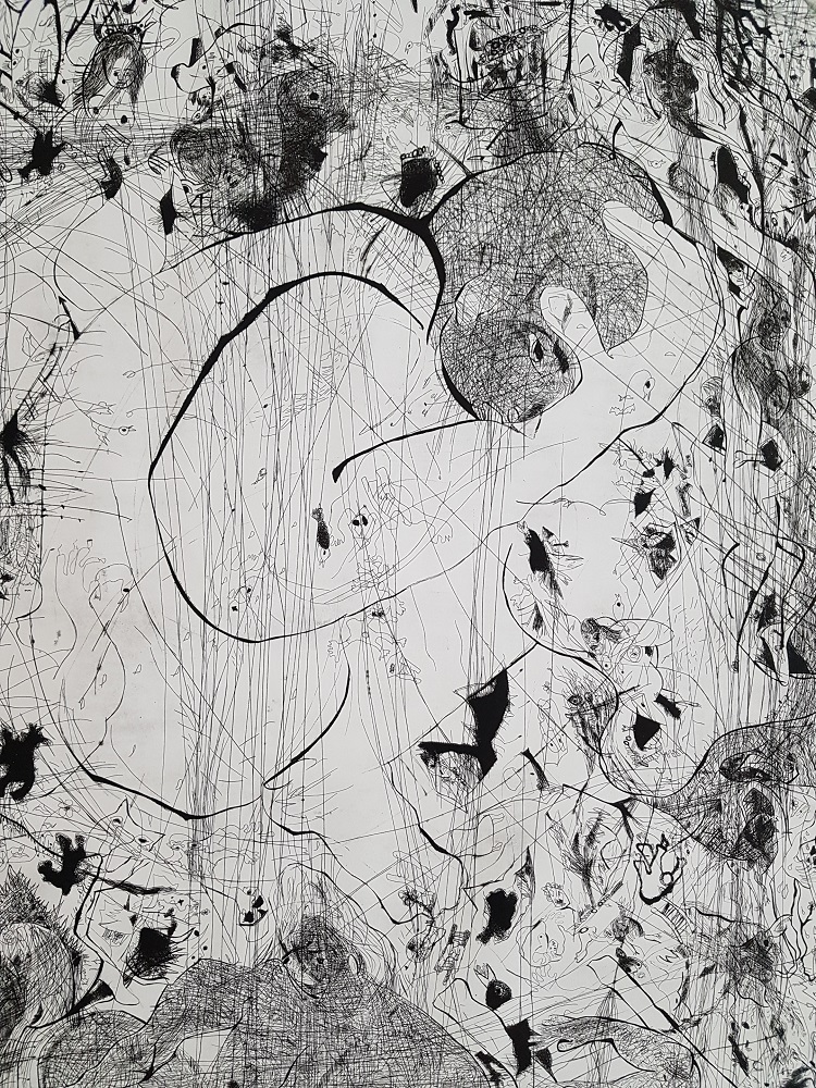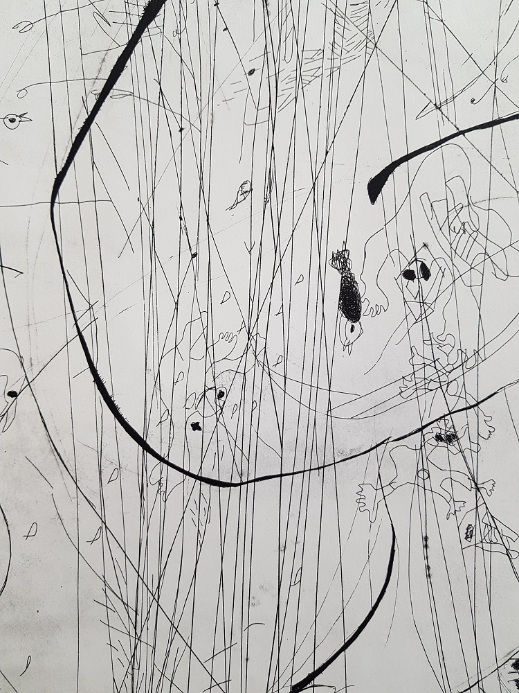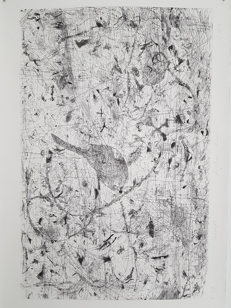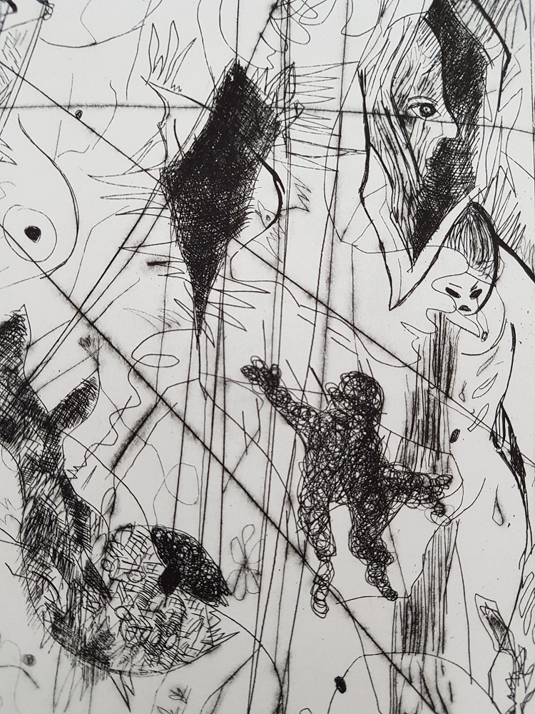 Harmoničnim ispreplitanjem mašte i stvarnosti, na tamnoj se ploči urezuju linije tih dvaju svjetova stvarajući osjećaj dinamike i pokreta, mira i statičnosti svih elemenata. Materijalizacijom emocija postojanje unutarnjeg straha se zamrzava, a refleksijom na životne probleme i emocionalna stanja slijedi „čišćenje” kao odlika osobnog i umjetničkog sazrijevanja.