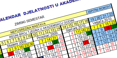 Objavljen je korigirani Kalendar nastavne djelatnosti u akademskoj godini 2012./2013. Kalendar