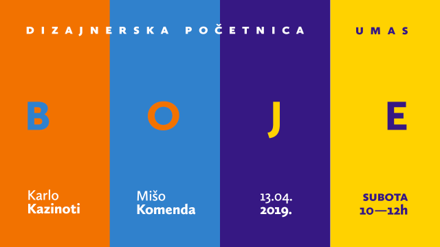 Dvosatnu radionicu “Boje” u sklopu dizajnerske početnice na UMAS-u održati će splitski dizajnerski dvojac Kazinoti&Komenda (Karlo Kazinoti & Mišo Komenda). […]