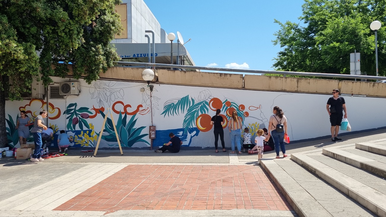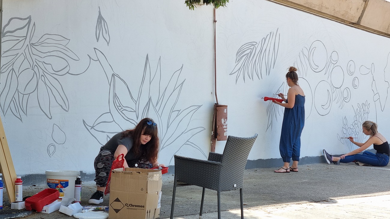 Uz suradnju voditeljice Dnevnog centra Juraj Bonači- Firule, Marina Vrkić, mag art., mentorice izv.prof.art. dr.sc. Dunje Pivac i asistentice Ide Bugarić Đuke, studentice diplomskog studija Likovne kulture i likovne umjetnosti: Lucia Lukšić i Vana Mardešić pomagale su korisnicima centra oslikavanje javne površine na lokaciji Ulica Ruđera Boškovića 18a.